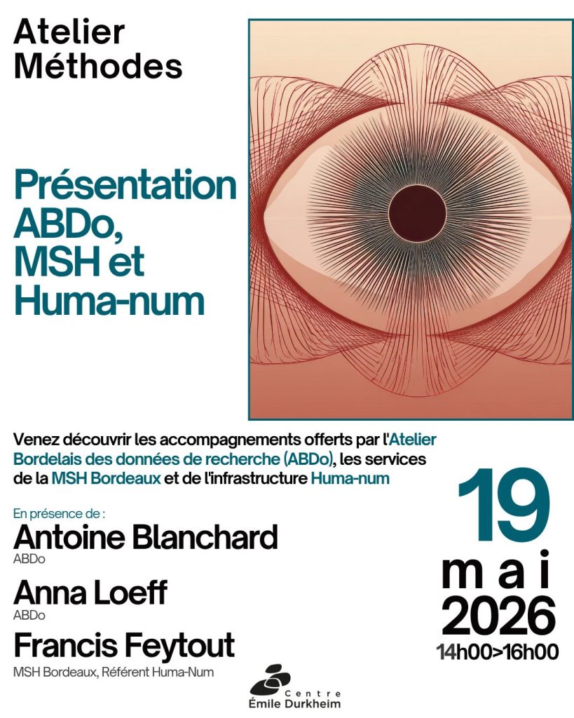 Venez découvrir les accompagnements offerts par l'Atelier Bordelais des données de recherche (ABDo), les services de la MSH et de l'infrastructure Huma-num.